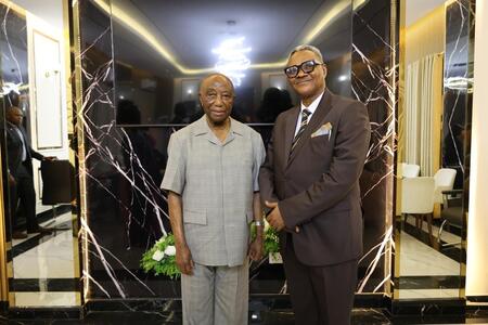 [Photo: Pastor Bassey E. O. Udoh and President Joseph Nyumah Boakai]